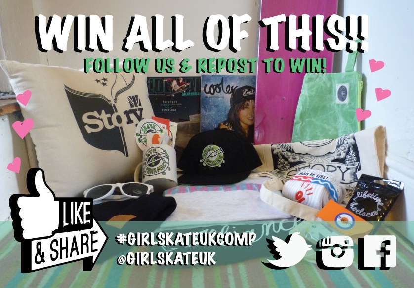 ‘FOLLOW’ our Twitter account & ‘Re-Tweet’ our competition post, using the hashtag ‘#GIRLSKATEUKCOMP’ and tag us in the post using ‘@girlskateuk’