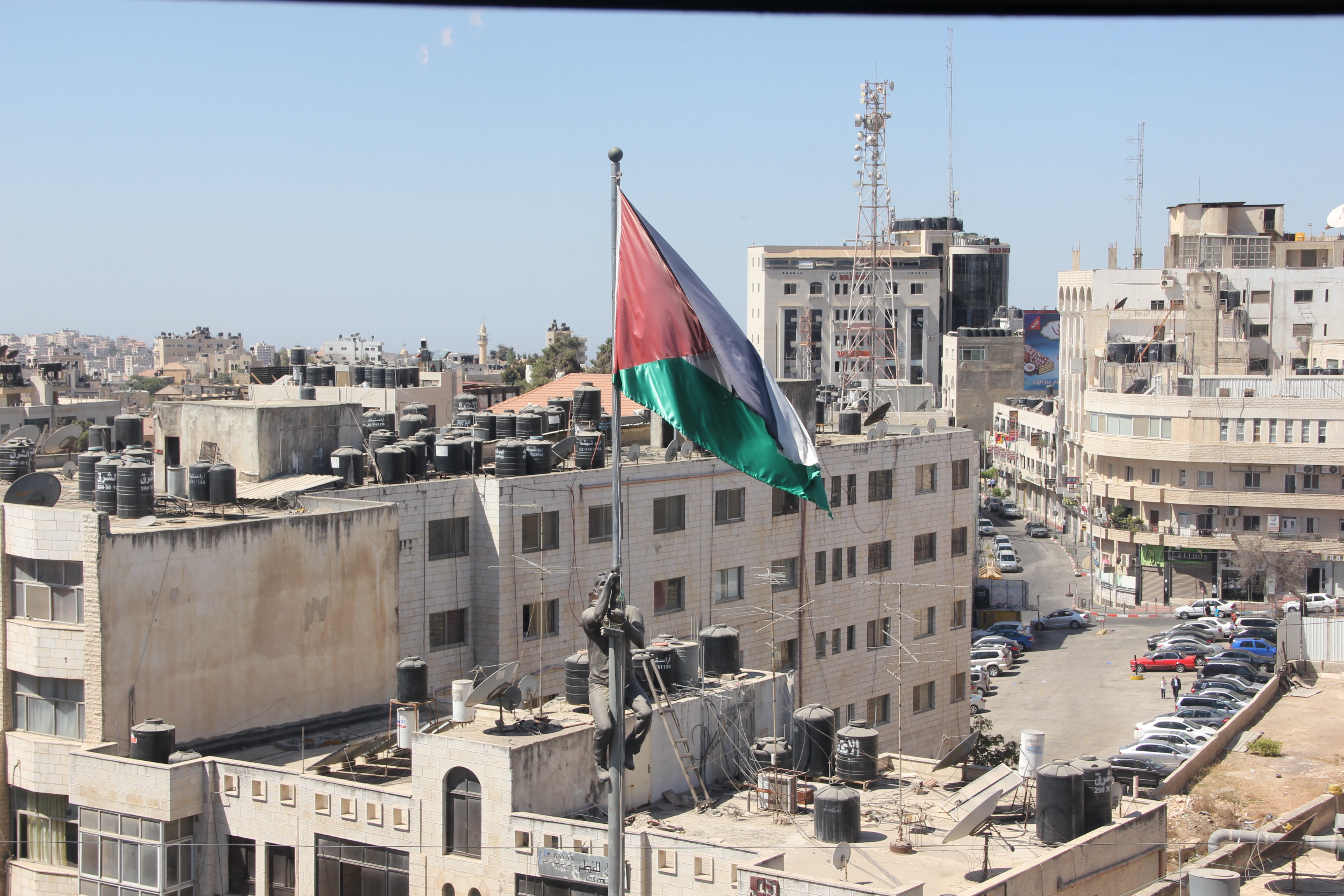 Between Thursday and Sunday last week it was Eid, and so we took some time off to visit the skatepark in Jerusalem and stayed over for the night in Ramallah before heading back to work. Whilst we were in Ramallah, we met up with Abdullah, one of the skaters who features on Epicly Palestine’d: The Birth of Skateboarding in the West Bank, and before leaving on Saturday we skated the central square in the city; a smooth stone plaza with steps and ledges.