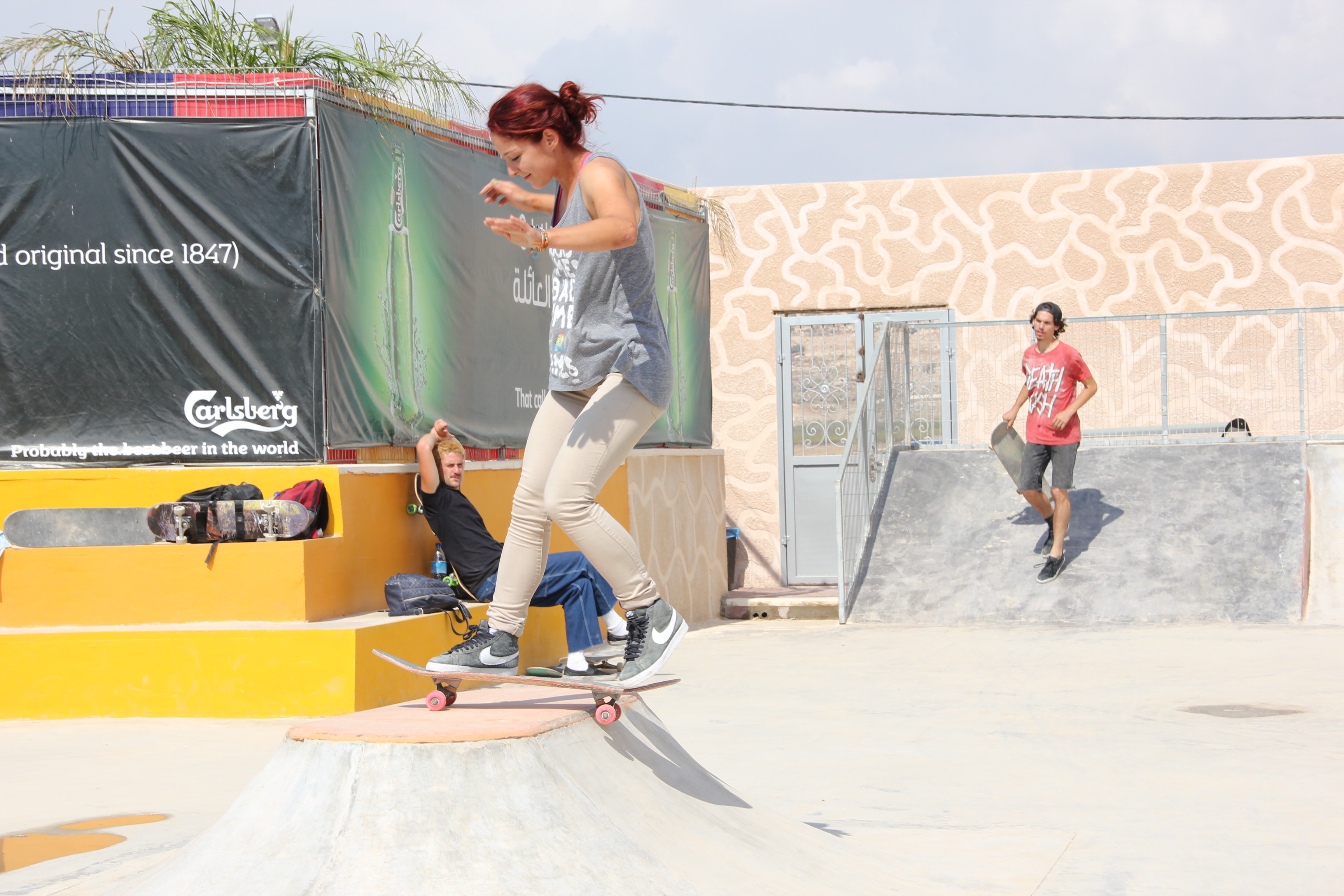 I managed to use my fledgling Arabic skills to explain some basic movements on the board, which seemed to work well. Speaking the language definitely isn’t integral to teaching the physical aspects of skating, but it really helps if you have a few words in the bag for getting them organised into lines and pairs, and for some of the more fundamental things like where your feet need to be positioned on the board.