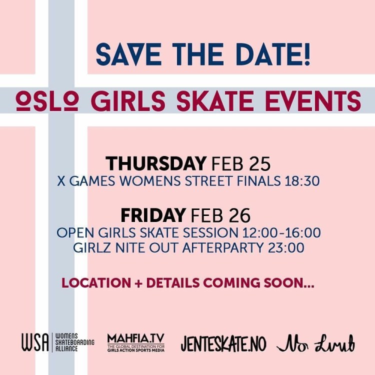 We are heading out to Oslo, Norway this week to watch the X Games Women’s Street Finals and to have a skate at the open girls session – Flights are super cheap so if you’re free this weekend then come along!
