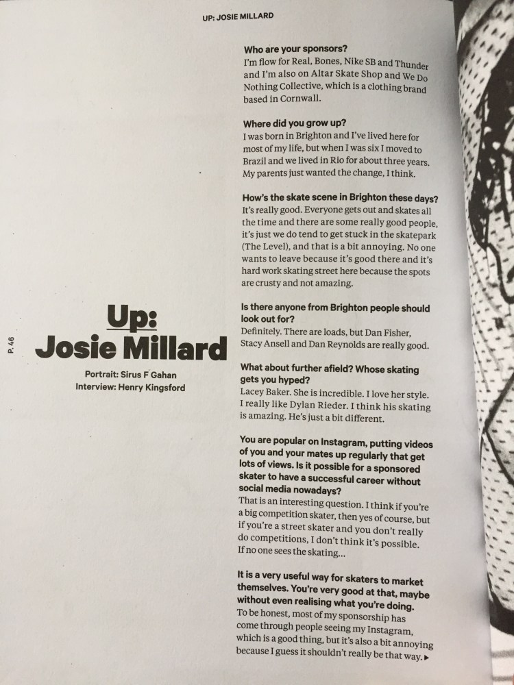 Check out her recent interview with Grey Skateboard Magazine with words from Henry Kingsford and Photograhy from Sirus F.