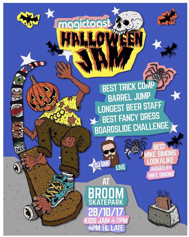 MagicToast skate shop are hosting a Halloween skate jam at Broom Skatepark in Leicester on Saturday 28th October.