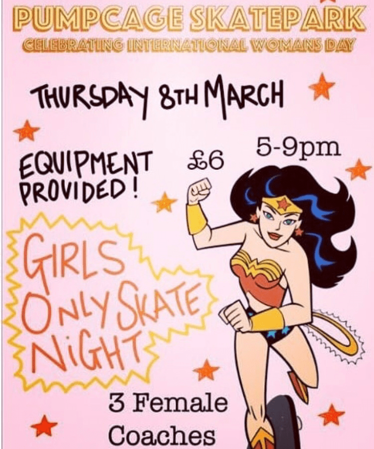 Broom Skatepark are also letting all ladies in HALF PRICE so get down there for a skate after work.