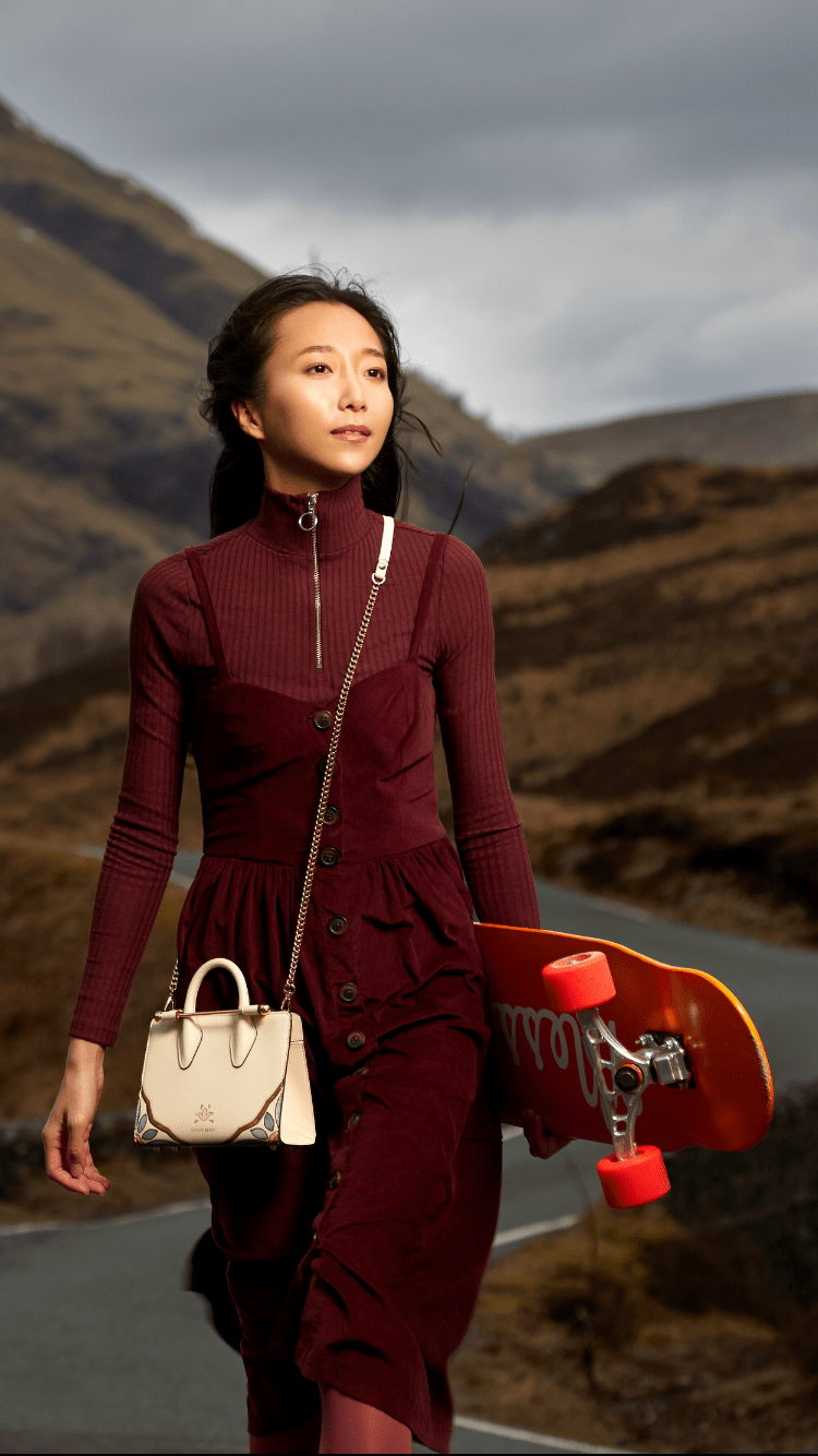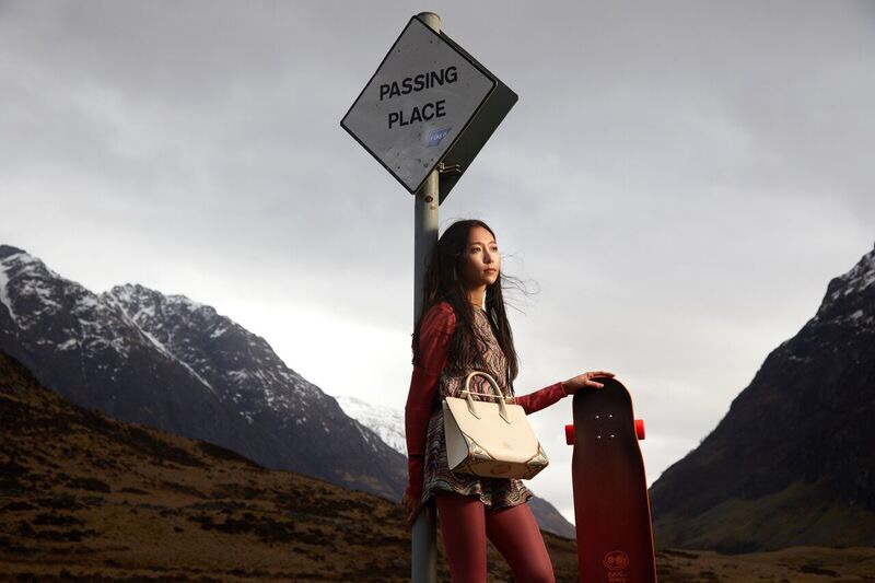 Earlier this year, Hyojoo came to Scotland to work on the collaboration and meet the Strathberry team. The campaign was shot in the stunning Glencoe valley surrounded by snow-capped mountains and scenic views of the Scottish Highlands.