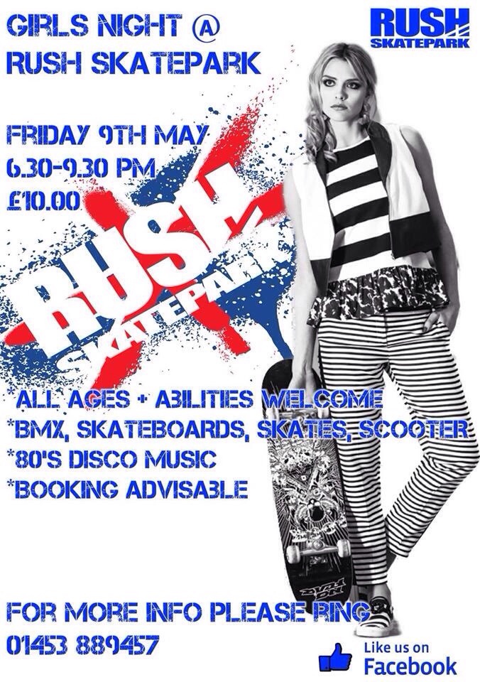 Girls night at RUSH Skatepark FRI 8TH MAY!