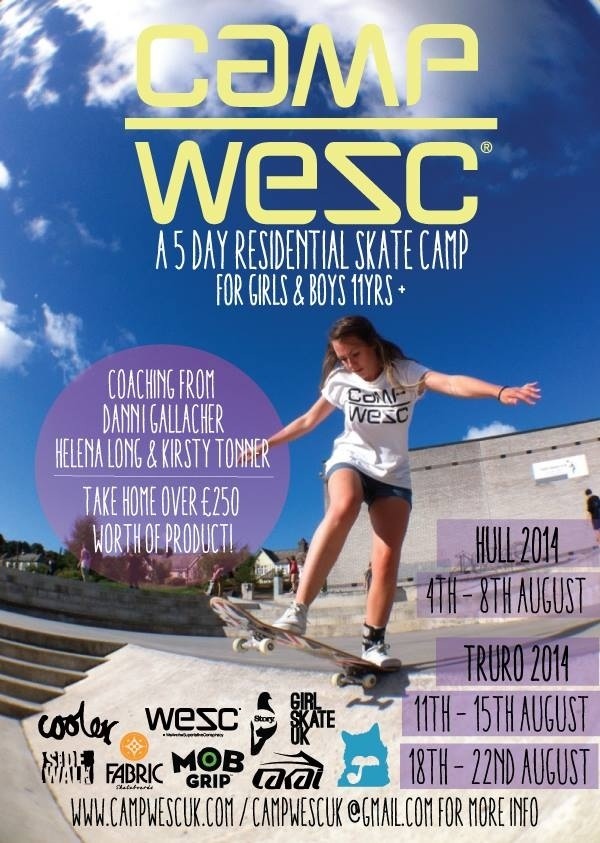 Girl Skate UK have teamed up with Camp WeSC to bring you girls coaching at their summer skate camps! Coaches include Vans rider Helena Long & Girl Skate UK authors Danni Gallacher & Kirsty Tonner! There are 3 weeks in August to choose from and locations cover both the North & South of the countryContinue reading “Camp WeSC UK Summer Dates”