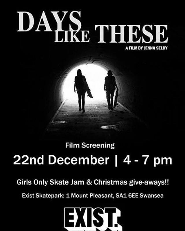 Exist have been holding a monthly Girls skate session for over 18 months, on the last Tuesday evening of the month from 4 till 7pm. There will be a christmas party on Tuesday December 22nd, which will include a screening of “Days like These” – The Welsh premiere of the film. The night isContinue reading “Swansea Premiere of Days Like These “