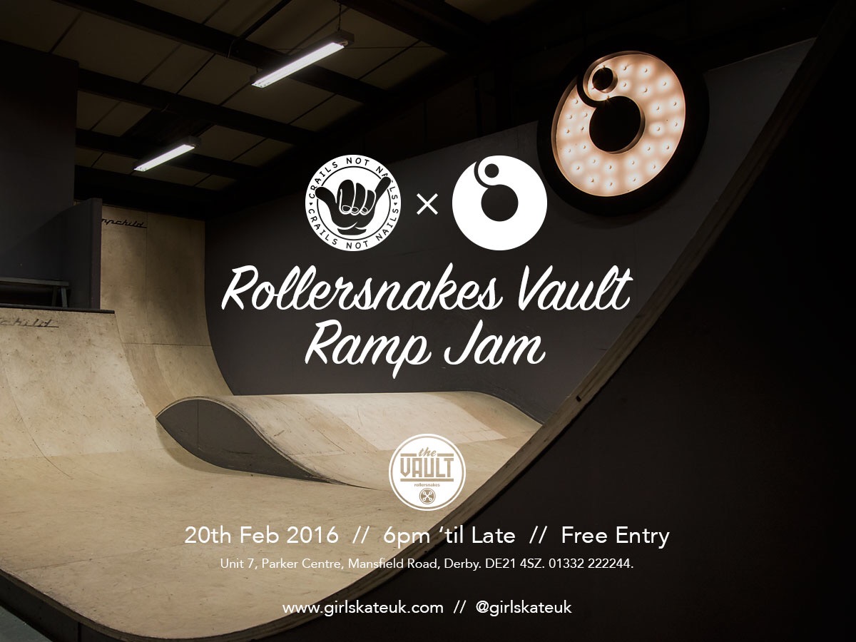 Get yourselves along to the Rollersnakes Derby Store THIS SATURDAY FROM 6PM for a ramp jam at the newly refurbished Vault team training facility. Everyone welcome, entry is free! Unit 7, Parker Centre, Mansfield Road, Derby DE21 4S2